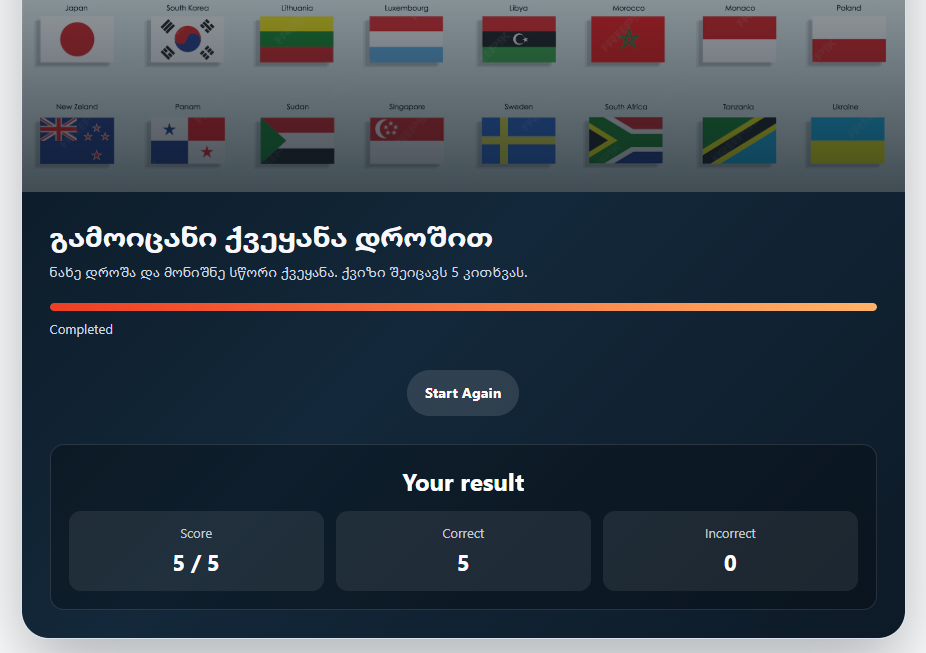- სურათების მხარდაჭერა (ქვიზი და კითხვები)