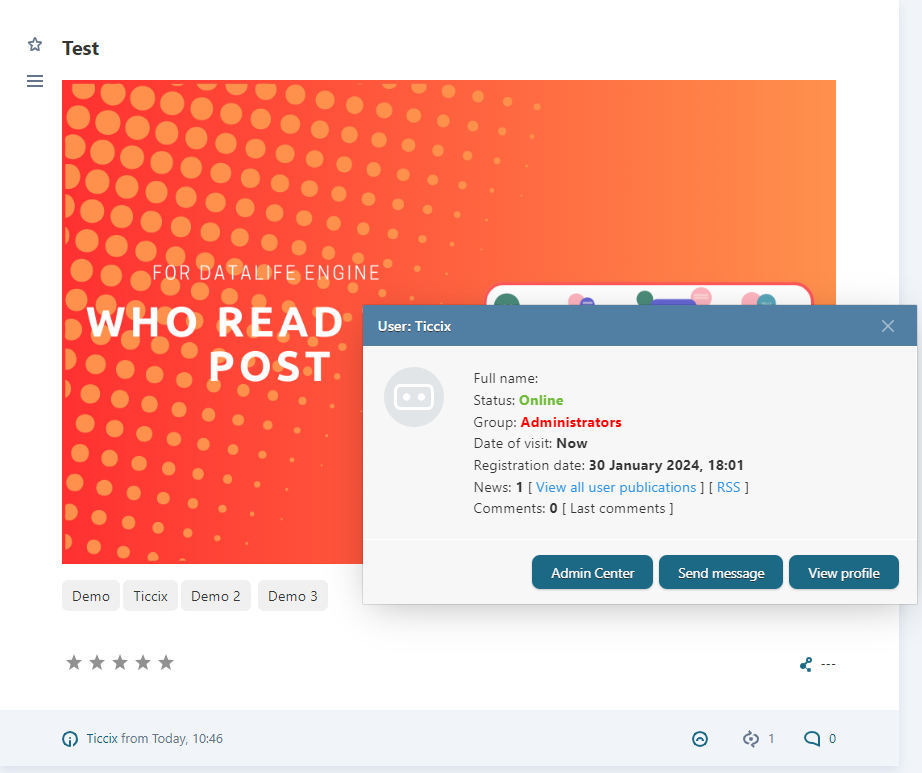 Who Read The Post? показывает в DLE список пользователей, которые прочитали полный пост.